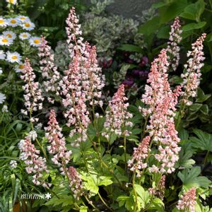 こんにちは😄 ①ヒューケレラのお花がいっぱい 咲いて綺麗です💓💓 ②お花をアップで💓💓 ベルみたいな小さなお花が可愛いです💓 ③ヒューケラピーチクリスプ ④ヒューケラドルチェ メープルファッジ ⓹ヒューケレラゴールデンセレブ ヒューケラもそれぞれ違うお花が 咲いて何気に可愛いです😄 地植えで何回か株分して植えてますが、何故か消えてしまうので、 全て鉢植えで育てていますが、 常緑の多年草でお庭の戦力になってます😄他にも何種かあります😄 株分して寄せ植えとかにも入れてます😄使える植物ですねー😄 バラの蕾が膨らんでもう咲きそうです💓💓ワクワクします💓