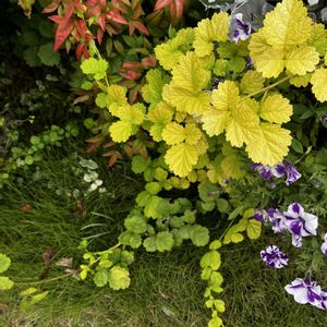 ルブス サンシャインスプレンダー なかなか主役になることは少ないかもしれないですが、 明るい葉色で、寄せ植えに入れると 雰囲気がパッと明るくなる♪ そして強い! 長々と伸びて、そこから根付きます なので、地植えは控えて、 鉢で楽しんでます〜😄 トゲがあることが、玉にキズ💧