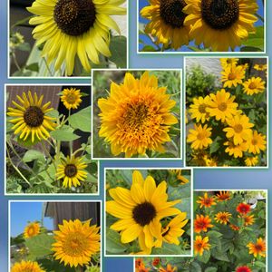 夏に元気をくれたヒマワリ🌻 右側真ん中は姫ひまわり 右下は姫ひまわり ヘリオプシス ブリーディングハーツ あとは種から咲いた向日葵です♪ 今月も見ていただき有難うございました🌸 今日も佳き日となりますうに🍀