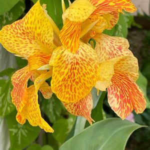 ビタミンカラーのカンナ🌼 種から初開花しました ①〜③8月18日 ④ 8月17日 ⑤ 8月15日 3年ほど前に庭に種を埋めて忘れていた頃に発芽を発見 鉢上げして様子見後今年地植えしました 地上部が枯れてきたら刈り取り、掘り上げずに盛り土やマルチングで保護しようと思います (軒下になる環境) おはようございます♪ 今日も良い1日となりますように🌼