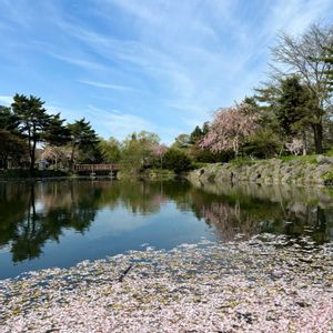 私の好きな散歩道🚶🚶♂️ 姿見の池緑地の桜さん🌸 満開になった桜の花びらが❣️ 姿見の池一面に〜……♡♡💕