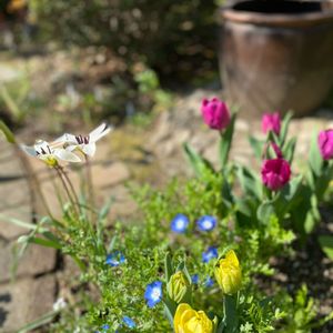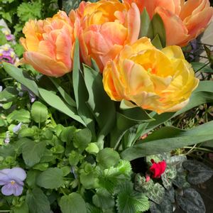 昨年あまりにも可愛かったので今年も植えてみました🌷 庭がパッと華やぐ色鮮やかさ💕 鉢にちょっとスペースがあったので昨年掘り起こした球根を入れておきました🙄 何が咲くか分からなかったけど、アプリコットビューティーでしたね😆 (5枚目のpicです) こちらも2年目とは思えないほど大きなチューリップになりました🌷