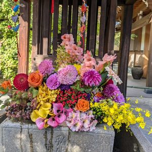 今日のお花の🩷ダリア💛 ①〜③昨年11月、東福寺塔頭勝林寺にて撮影の花手水のダリアのお花です🤗💞 ④Googleフォトから赤いダリアのお花のコラージュが届きました🤩💖 ⑤植物園にて撮影の大輪の黄色いダリアのお花です😍