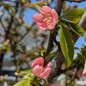 今日のお花の🩷カリン🩷 ①②今年の4月9日に、京都の岡崎公園にて撮影のカリンのお花です🤗💞 可愛い過ぎるピンク色や花姿、大好きなお花です🤩💖 ③桜🌸のお花とカリンのお花とのコラボです😍 ④京大病院敷地内にあるカリンの木、現在はたくさんの実が実っています。 ⑤測ってみると、10cmありました😯