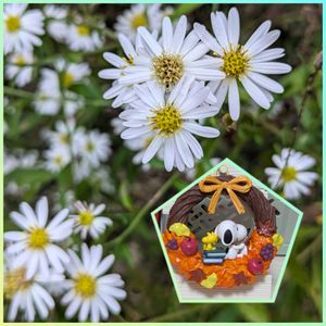 今日のお花の🤍ノコンギク🤍 ・ノコンギクは野菊の1つで、ヨメナに非常に似ています。 ①〜⑤区別の難しいお花なので、植物園にて10月に撮影の、ノコンギクの名札がついていたものをアップします🤗💞 🏷️毎月2日はスヌーピーの日に参加します💖