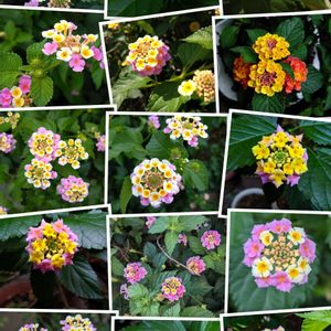 今日のお花の🩷ランタナ💛 ・小花が集まって咲く色鮮やかな可愛いお花😍💖 ①②Googleフォトからランタナのコラージュが届きました🤗💕 ③お出かけ先にて🤳 ④白いランタナのお花🤍 ⑤ランタナのお花とアゲハ蝶🦋