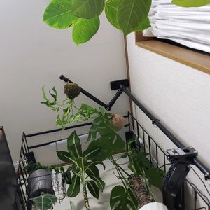 おはようございます🌧️🌬️ 昨日のステマリア とりあえず吊るして見ました(笑) 大きくなれよ🥸 台風🌬だんだん風が強くなってきたかな 暴風域に入ったか! 屋根だけは飛ばさないで下さい🙏(笑)🥹