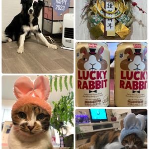 2023元旦🎍🐰🎍㊗️ GSの皆さん明けましておめでとうございます。 今年もどうぞ宜しくお願い致します🙇♀️🐶😺 皆さにとって素晴らしい一年になります様に❤️ 今日は朝から🍺 🐰の缶ビールで🍻㊗️