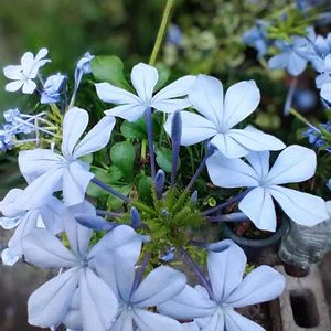 我が家のフェンス際を涼し気に彩る 🩵ルリマツリ(イソマツ科) 毎年大暴れ〜するので 🩵🌿🩵 オットが今年こそ、根元からバッサリすると〜🤣 なので、記念に📸パチリ!しました 🩵🌿可愛いんだけどな〜 (9月まて、GSお休みしますね〜 秋の花が咲き出したら〜帰ってきます🤗)
