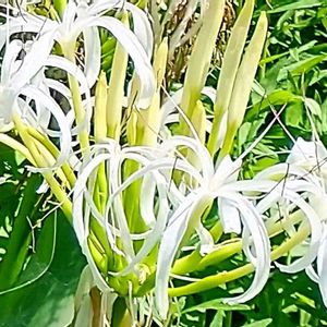 今日のお花 🤍ハマユウ(ヒガンバナ科)和歌山・白崎海岸の群落 過去picです① 我が家でも、種から育ててるけど、まだまだ花は〜🤣 🩵ハマゴウ・浜香(シソ科)同じ白崎海岸で一枝頂いてきた挿し木も4年目になりました 栄養不足かな〜?花色薄くなってる😅② 🩷ランタナ・七変化(クマツヅラ科)🦋シジミチョと〜③ 💜デュランタ宝塚(クマツヅラ科)こちらにも🦋が〜④ オシロイバナ(オシロイバナ科)咲き分け 白花にピンクが混じって〜🥰⑤