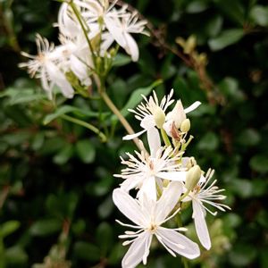 ご近所さんの垣根に毎年絡み付いてさく、🤍センニンソウ(キンポウゲ科)綿毛チェックに行ったんだけど〜① 残念、咲き残りの一枝のみで〜 刈り取られた後🤣 6月に購入した🤍マンデビラ・ブライドカスケード(キョーチクトウ科)花を咲かせた後、ツルを伸ばし〜二番花が咲き出しました②🥳 ほったらかしでも増える、元気っ子🩷ランタナ(クマツヅラ科)③ 🤍🩷咲き分けオシロイバナ(オシロイバナ科)白にピンクの絞りが可愛いでしよ④ この秋、市のイベントで作陶指導する 🎄ミニXツリーの陶灯り、参加募集用見本が出来上がりました⑤ お近くの方、ご参加お待ちしています🤗