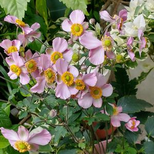 今日のお花🌸シュウメイギク(キンポウゲ科) お気に入りの 一重の可愛い娘だったのに〜去年枯らしてしまった🤣① 花散歩🚶🏼♀️🚶🏼♀️で見つけた 秋明菊 花色濃いのや八重など、いろいろ咲いてて〜 華やか💕②③④