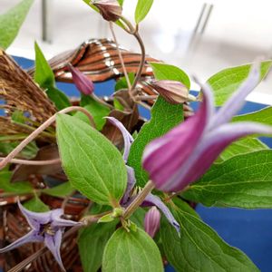 昨日の市民祭で、陶芸倶楽部の仲間の展示作品・ 陶籠に活けられた ベル咲きの💜クレマチス・ブルーピルエットの花が素敵だったから📸パチリ!①② 私の作品、華がなくて〜🤣 向いの部屋に展示してる、絵手紙倶楽部 今年も顔出しし、ちょこっと体験〜 アハッ!😅 チャレンジしたけど〜失敗 なので見せられないわ🤣 素敵な山茶花④は、会員さんの作品 いつかこんな可愛い花描けたらなぁ〜と④