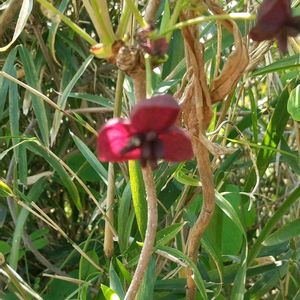 農園散歩 アピオス(アメリカホドイモ)美味しいけど、なかなかスーパーでは見ないです。 毎年ここに咲いてるのに、毎年ハギと間違えます~😅