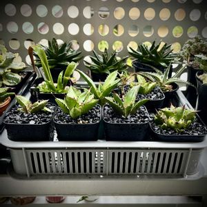 aeroファミリーに、チタノタチャンが、加わりました🙌 色の日2周年🎁企画で、いただきました🤩 ありがとうございます🥹 昨年いただいた、キーホルダー謎アガベが、もう、キーホルダーでは、なくなって寂しかったところ、新たなキーホルダーが、やってきたー٩( ᐛ )وウェーィ aeroしゃんは、アタシの好みが、わかってらっしゃる\(//∇//)\🎶 そろそろ、独り立ちさせたい雷神様、 葉焼けするほど、日光🌞に当てたのに、葉っぱが、細くなってしまいました😖 葉焼けしたから、遮光したのが、良くなかったんかな〜🤔 ニューキーホルダーチャンが、大きめの鉢に入ってる訳は、根っこが、かなり長かったからです😉