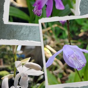 お疲れ様でした😊 班入りシランまだ頑張って咲いてます❣️ ②ブルーシランも何とかさいてる🤣 ③紫蘭も先の方で頑張ってます🤗✨ ④班入り白色シラン過去の写真 ⑤口紅シラン過去の写真 🏷️今日の花