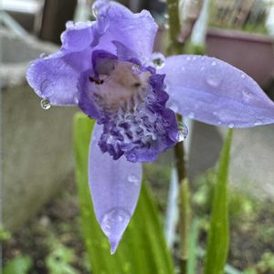 「今日のお花」?と思うくらい、紫蘭を投稿している花友さんが多かった今日。 東日本エリア、ちょうど紫蘭の綺麗な時期なのでしょうかねー。 触発されて私もブルー紫蘭をば📮 春先に植えたばかりの苗、やっとこ咲いたけどまだ弱々しい。数日前の暴風で地面をこすりナメックたちの餌食になっていたのでレスキューして部屋に飾りました。 葉っぱは今後の光合成のために今年は切れないので繁ったヘメロカリスを頂戴しました。
