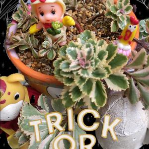 おはようございます🍀 今朝は、外気温12℃。 もう少し寒く感じます❗️ 🏷️牛の日 🏷️錦の日 🏷️ハロウィン月間 1枚目は、もう一つのアトランティスが入っていたタニコさんのリメ鉢。 こちらは、ほとんど、残念な姿になってしまったので、もう一つの鉢の子をカットして、2本挿してみました💕 2枚目は、くるみ*さんの箱庭。 グッズは、今年、色を塗ってメンテナンスしたので、まだ綺麗です。 多肉は、夏にずいぶんダメになったので、仕立て直しました。横30cm程ある箱庭なので、ミニじゃなくても、普通サイズでも大丈夫🥰✌️ パズルブロックの牛さんは、先日みんさんに頂いたもの。ナイスタイミングですね‼️ 今日も、少しずつ頑張ろう💕