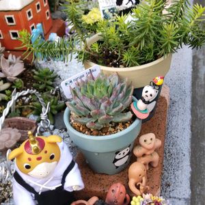 おはようございます🍀 今朝は、早くから多肉事。 🏷️パンダの日 🏷️ハニワの日 🏷️つぶつぶの日 🏷️ハロウィン月間 1枚目は、45さんのパンダリメ鉢に入っている子達💕 気も下がってきて、過ごしやすくなってきました🤗 2枚目は、探したら、まつぴよさんのバンダちゃん、こんなにいました。 あれ🤔❓ ブースカくんも、パンダになりきっています。 KKTで買った、パープルヘイズのストロベリーカラー。sumiさんのリメ鉢にIN。 黒か薄紫で悩みましたが、黒にしてよかったかな🥰✌️ 今日も宜しくお願いします🌿