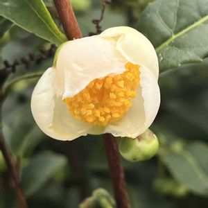 お散歩中に見たお花(樹木)… チャノキ(茶の木) 🌿🌼🌿 ⚫︎⚪︎⚪︎⚪︎