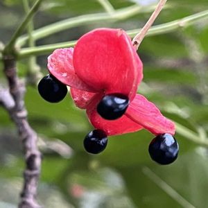 里山を歩いてみれば… 色んな果実がありました♪ ツリバナ(吊花) サルトリイバラ(猿取茨) サンザシ(山査子) オトコヨウゾメ(男莢蒾) ガマズミ(莢蒾) ⚫︎⚪︎⚪︎⚪︎⚪︎