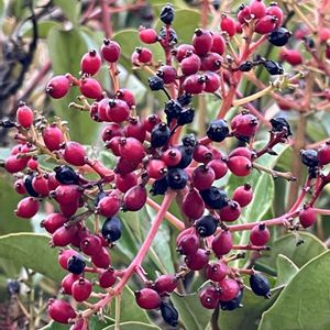 お散歩中に見た果実(樹木)たち… サンゴジュ(珊瑚樹)×3 🔴 カラタチ(t唐橘)×2 🍊 ⚫︎⚪︎⚪︎⚪︎⚪︎