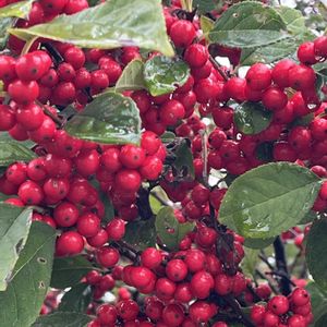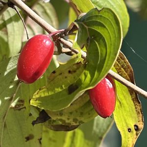 お散歩中に見た果実(樹木)たち… サンシュユ(山茱萸) コナシ(小梨)×2=ズミ/コリンゴ リキュウバイ(利休梅) ハクウンボク(白雲木) ⚫︎⚪︎⚪︎⚪︎⚪︎