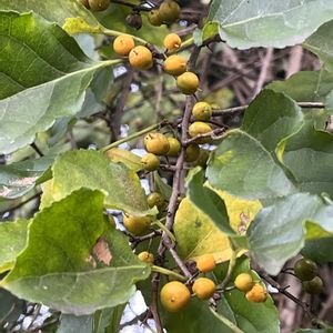 お散歩中に見た果実(樹木)たち… ウメモドキ(梅擬)×2 オリーブ🫒 ザクロ(柘榴) トベラ(扉)=トビラノキ ⚫︎⚪︎⚪︎⚪︎⚪︎