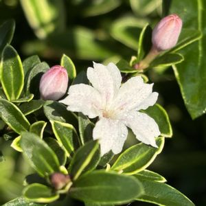 ❁. 。ハクチョウゲ’ピンクミスティック’。.❁ 桜のような可愛らしい ピンクの花を咲かせる ハクチョウゲ’ピンクミスティック’🌸 蕾も桃色に色好き とっても可愛いですよね♡ 葉のフチに斑が入るのが特徴で 花がない時期でも鑑賞性がある 魅力的な植物です🌿 ハクチョウゲは漢字で 「白丁花」といいますᝰ✍︎꙳⋆ 「丁」はラッパを意味し 花がラッパのように咲いていることから 名付けられました🎺 比較的 低木なので 小さなお庭に花木としておすすめです🌱 *育て方* 日当たりのいい場所を好みます。 耐陰性があるので日陰でも育てることができます。 水やりは土の表面が乾いたらあげてください。