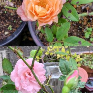 夕方のパトロール ①オレンジとピンクの四季咲きのバラ 咲いてます ②挿し木で育てた白丁花に花が咲きました ③暴れてる 朧月株が大きくなりすぎたかな じゃがいも 植えてた場所に掘り残しが育っていました😂