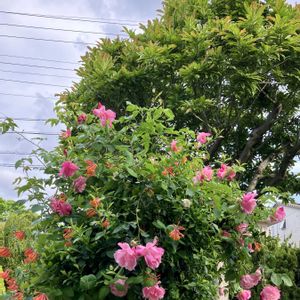 今朝の庭から… 7:07〜7:16 ヒメコブシを彩るのはバラとニンドウ そして しばらくするとルリマツリに バトンタッチ 🏷️木曜日は木 ヒメコブシ🌲 投稿が前後してしまいました😅