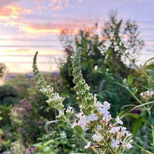 今夕の庭から… 18:51〜19:08 少し暑さに慣れたような..⁉︎ 1️⃣ツイ撮ってしまうラムズイヤー 2️⃣昨日は一輪だけだったコレオプシス 3️⃣日没後 白が浮かび上がる♡