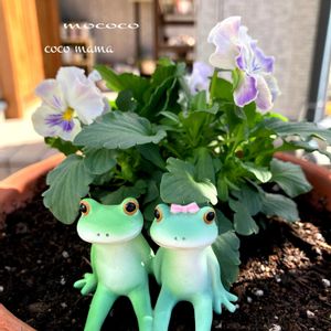 こんばんは✿·͜·ᰔ 🏷毎月6日はカエルの日 🏷カエル仲間 参加します•*¨*•.¸¸♬︎ ここに居ますよ〜🐸 1⃣暴れ火祭りの中 赤いガチャカエル❤️ 2️⃣今年初パンビオ狩り トキメキビオラ🩷 1度買うとまた探しに 行きたくなるパンビオ🤭 3️⃣毎年クリスマス近づくと このモルタル鉢登場😆 本当は円形植えなのに 放置の果て〜 それぞれ暴れ放題💚🩷 酷いビョーン伸びは カットしました🤣