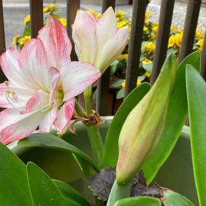 6月25日 今日のお花 ❀🤍❤🌿アマリリス🌿❤🤍❀ 1️⃣先週迄咲いていた我が家のアマリリスです。 2️⃣3️⃣4️⃣5️⃣ご近所さんのアマリリスです。 日本には江戸時代に渡来しました。 和名 ジャガタラ水仙 別名:ヒッペアストルム. キンサンジコ (金山慈姑) ナイトスターリリー (knight star lily) ホンマアリス (本アマリリス) 太い茎先に6弁の大輪花を4〜6個つける。
