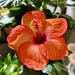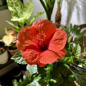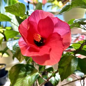 今日のハイビスカス🌺7号機アドニス😊久しぶりに咲いてくれました😊新記録達成に他の植物🪴と一緒に撮影😊紅一点