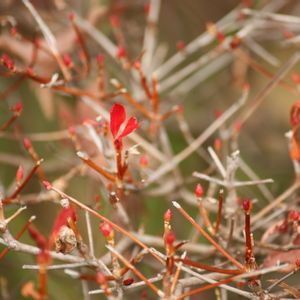 おはようございます🌨️☁️ 丘陵地の樹木 幼木です。 新芽が、お花みたいでかわいいです。🍃🍃🌿🌿🌿 コナラかな? ブナ科コナラ属