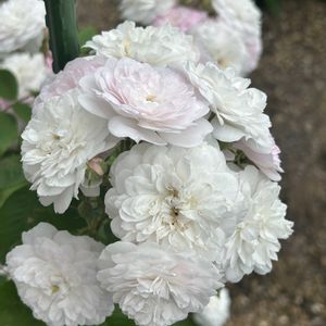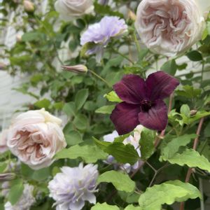好きすぎて何度も投稿してしまうシンベリン 咲き進んで大輪のホワホワ ティッシュで作った花のよう クレマチス ダークアイズがよくあいます ベティコーニングは淡くて小さくて 思ったより映えないので (私の誘引が下手なせい?😅) もっと活かせる別の場所を考えよう
