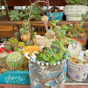 日常忙しくしていたら、あっという間にハロウィンの10月になっちゃってました🎃🦇🕸 今月もよろしくで〰️す😊✨ 真夏に多肉勢が爆死しまくり落ち込んでましたが、少しずつ涼しくなってきて生き返る子も( *´꒳`*)ステナクテヨカッタ ワタクシいい歳ですが、birthday present🎁いただいちゃいました✨ りょうさんから大阪万博のミャクミャクグッズやサボテンちゃん (3枚目寄せ植したものです) 今GSはお休み中のお友達からは、大きな大きな特選あきづき(新高梨と「豊水梨」の交配品種に「幸水」を交配させた、糖度が高く酸味が少ない)美味しかったです😊 繋がりに感謝✨ 今日はイベント手伝い(植物関係では無い)で、コメント返信遅れるかもです🙏💦