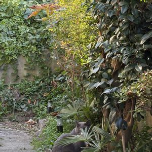 荒れ放題の庭と野良猫ちゃん。 本人的には隠れているつもりらしいが完全に見えておりますよw. ちなみに彼の名はギズモあるいはグレー。 うちの庭によく現れる猫種不明の地域猫。