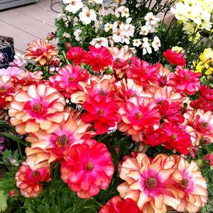 ラナンキュラスラックスたち 均等に日に当てようと、ちょいちょい配置替えして、鉢があちこちにあるので一枚の写真には収められません💦😖💦 ご近所が写り込まないようにちょこっとずつ撮りました。 こんなにあると管理も大変なわけです。 ①左 5年目アリアドネ(1/5サイズ) 右 2年目ディオニュソス ②左 3年目ティーバ 右 3年目ウラノス ③左上から 3年目ミネルバ 2年目リーベラ 2年目ロムルス 右上から 3年目メリッサ 3年目ヘスティア 3年目リュキア ④左上 2年目サティロス 右上 2年目ヘラ 左下 2年目アウラ 2年目アフロディーテ ⑤左上 欠片1年目ケラモス 右上 2年目モノケロス 左下 2年目 ハリオス 右下 4年目エリス 3年目が多すぎる気がするので3年目じゃなくて多分4年目の子もいるかも…。 今年お迎えの子と株分けっ子は今回は割愛させていただきます。 あ、グレーシスを撮り忘れた…