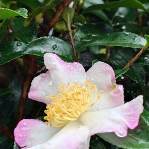 ご近所さんのサザンカ🩷 ̖́- 次々と咲いてきました꒰ঌ(˶ᐢᢦᐢ˶)໒꒱ 🏷日曜日は日本を感じる和の華 🏷桃色界隈 参加します🩷 ̖́- 🏷️✨️水滴は魔法使い✨️ よろしくお願いします🤗
