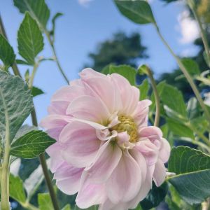 終わったと思ってたダリアさんが復活して一輪咲いてくれた🩷優しい色合いでメッチャ可愛くて癒やされます💖どこから観ても綺麗だな〜💓