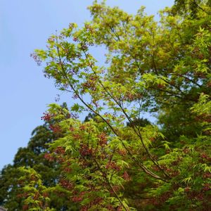 今日のお花 イロハモミジ ① 4/16 青空にお花が映えます ② 5/2 種が出来ていました ③ 先日の島根県大根島由志園の庭園 紅葉🍁🍁はもう少しまだかなぁ……🤔 職場のモミジもまだ色付いていませんでした(#^.^#) ④ 素敵な夕方だったので🤳カシャ 今日も一日お疲れ様でした(* ᴗ͈ˬᴗ͈)”