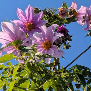 昨日は快晴☀ 皇帝ダリア(≧∇≦)b 咲いていました🩷 ̖́-🩷 ̖́-🩷 ̖́- 今週もよろしくお願いします😉⭐ 🏷⸒⸒イーオンナ美人の日 🏷⸒⸒月曜日は元気色の花 参加します✨