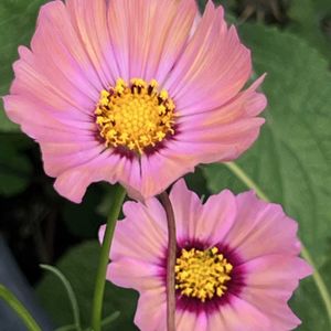 コスモスの優しい色ページュビンクの花が素敵 チョコレートコスモスと仲良く咲いています❗