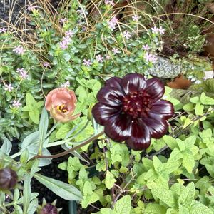 “チョコレートコスモス チョコモカ” 咲きはじめ艶々❤️ 切り戻しをしたプッチーノも復活の兆し✨