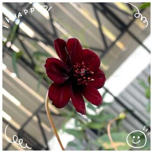 花屋ではよく見かけるけど、散歩では全く見かけない「チョコレート コスモス」。 チョコレートの香りもするみたい。