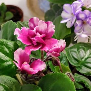 セントポーリア アレス 夏は濃いラズベリーのようなカラーで咲いてくれます 奥のミニセントポーリアは7月から次々ずっと咲いていてセントポーリアってほんとすごい ➁バラ楼蘭ちゃん ミニバラのようにちいさくかわいく🩷 ➂この茎はすごく太いせいかつぼみ3つ ➃ペンタスの花がら切ってたら上から落ちたニチニチソウが😍まちがい探しみたい🤭