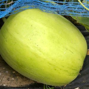 この春、畑の隅にこぼれ種から発芽🌱した株を、空き畝に植えておいたウリ科と思われる元手0円野菜🤔、この姿はマクワウリ🍈で間違い無さそう💡😃。 奴等🐦⬛🦝に盗られる前に防鳥獣ネットで囲んでおいた💪。 今年もバーバズー🟡にして遊べるかな^_^💧。