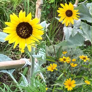おはようございます😃 🏷️今日のお花 🍃🌻ヒマワリ🌻🍃 ①銀葉ヒマワリ🌻 (昨日の神峰公園にて☺️) 右下は、ヒメヒマワリ🌻です😊 ②ミニヒマワリ🌻(私の庭にて😊) 今年、溢れ種から咲いた ミニヒマワリ🌻今はもう種に なってます😊 ③ベゴニア ④サルビア・コッキネア ⑤サマーポインセチア 上が昨日で下がその前の日です❣️ ③④⑤ 種から、育ちました😄 🏷️真っ赤な火曜日参加します。